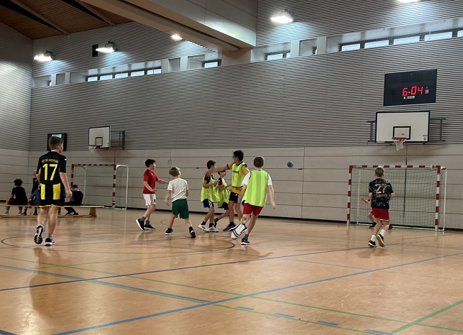 Beim Handballturnier der 5. Klassen kämpften in Mädchen- und Jungen-Mannschaften jeweils 8 Teams gegeneinander. Über die Vorrunde der Gruppenspiele ging es in die Platzierungsrunden, bei der alle Plätze ausgespielt wurden. Ein Team von Schiedsrichtern aus der Schülerschaft sorgte für Einhaltung der Regeln und Fairness.